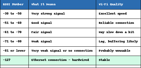 The higher (less negative) the number, the better your Wi-Fi will work.